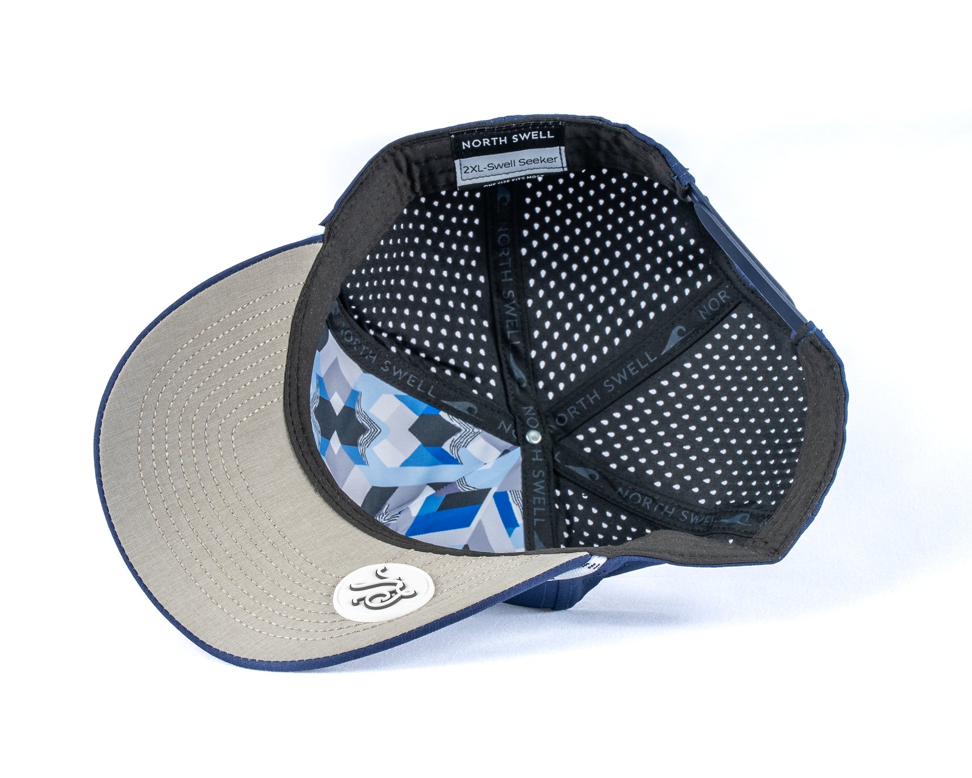 Inside, a vibrant coastal-inspired lining pairs with our embossed North Swell emblem on the brim for a touch of flair. The soft-touch snapback closure ensures a snug, customizable fit, and precision-cut ventilation holes keep you cool.