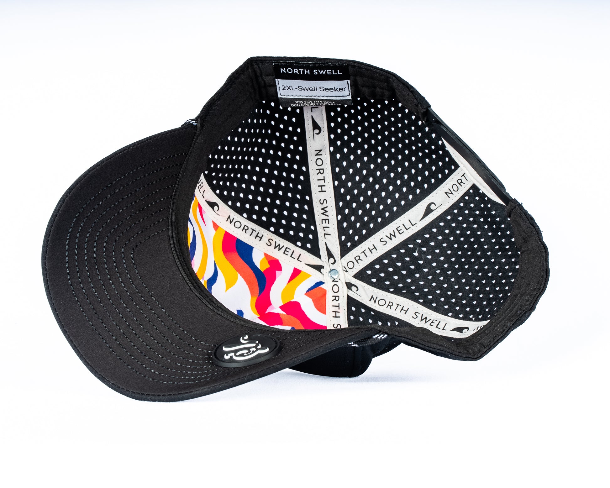 Inside, a vibrant coastal-inspired lining pairs with our embossed North Swell emblem on the brim for a touch of flair. The soft-touch snapback closure ensures a snug, customizable fit, and precision-cut ventilation holes keep you cool.