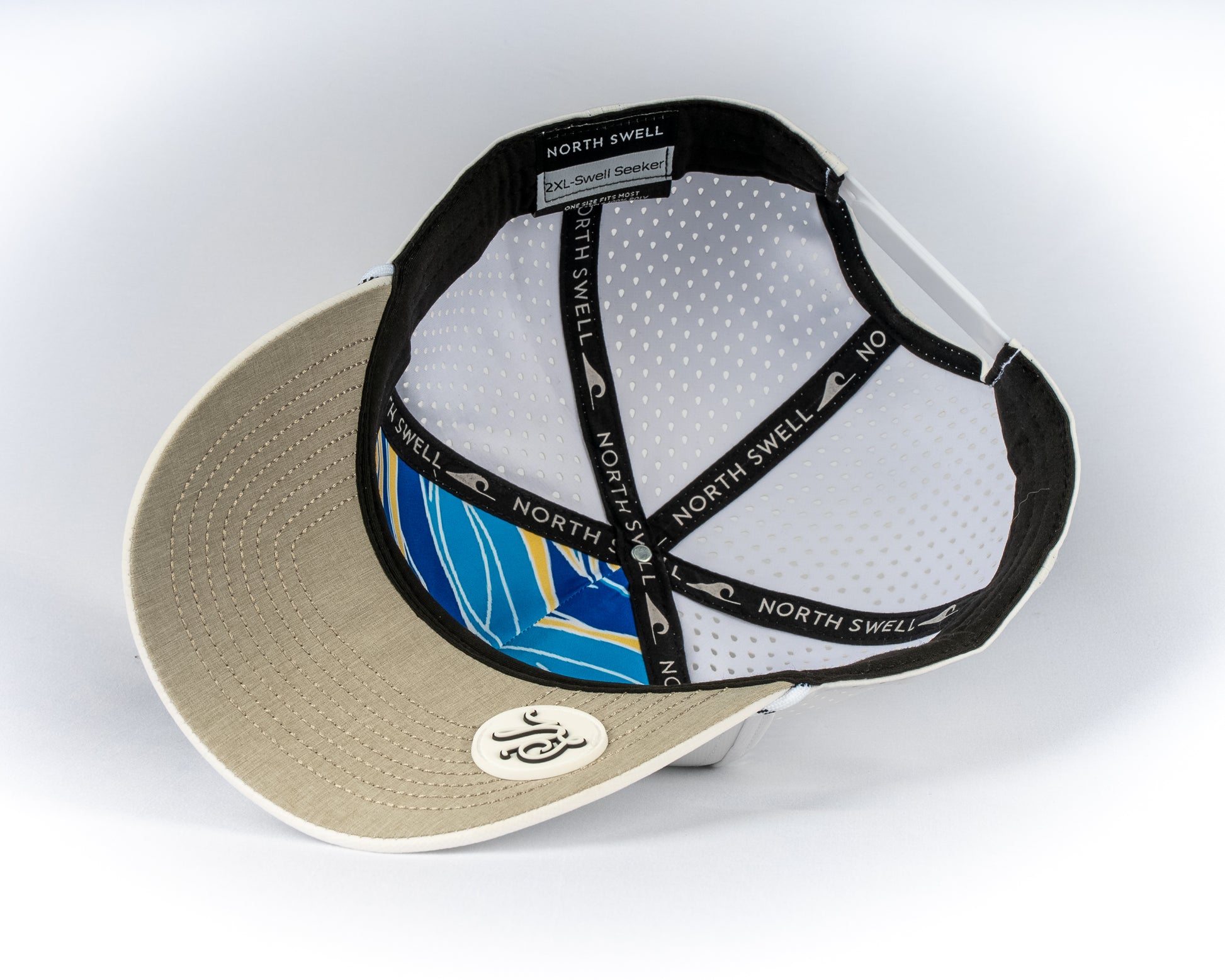 Inside, a vibrant coastal-inspired lining pairs with our embossed North Swell emblem on the brim for a touch of flair. The soft-touch snapback closure ensures a snug, customizable fit, and precision-cut ventilation holes keep you cool.
